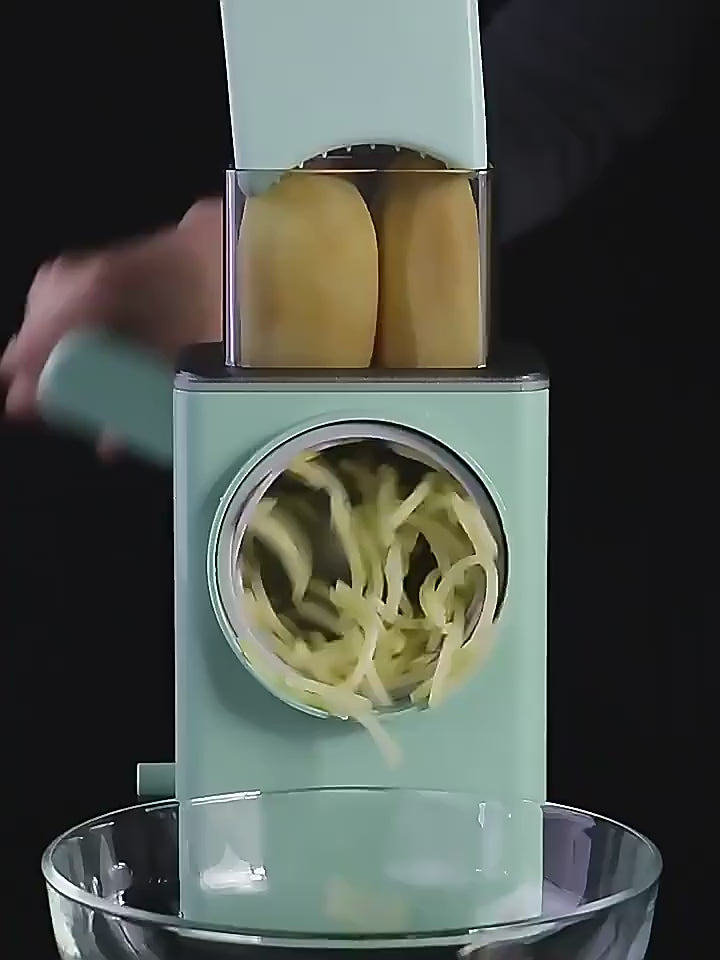 Professional manual vegetable grater with multifunctional rotary drum design for efficient kitchen food preparation.